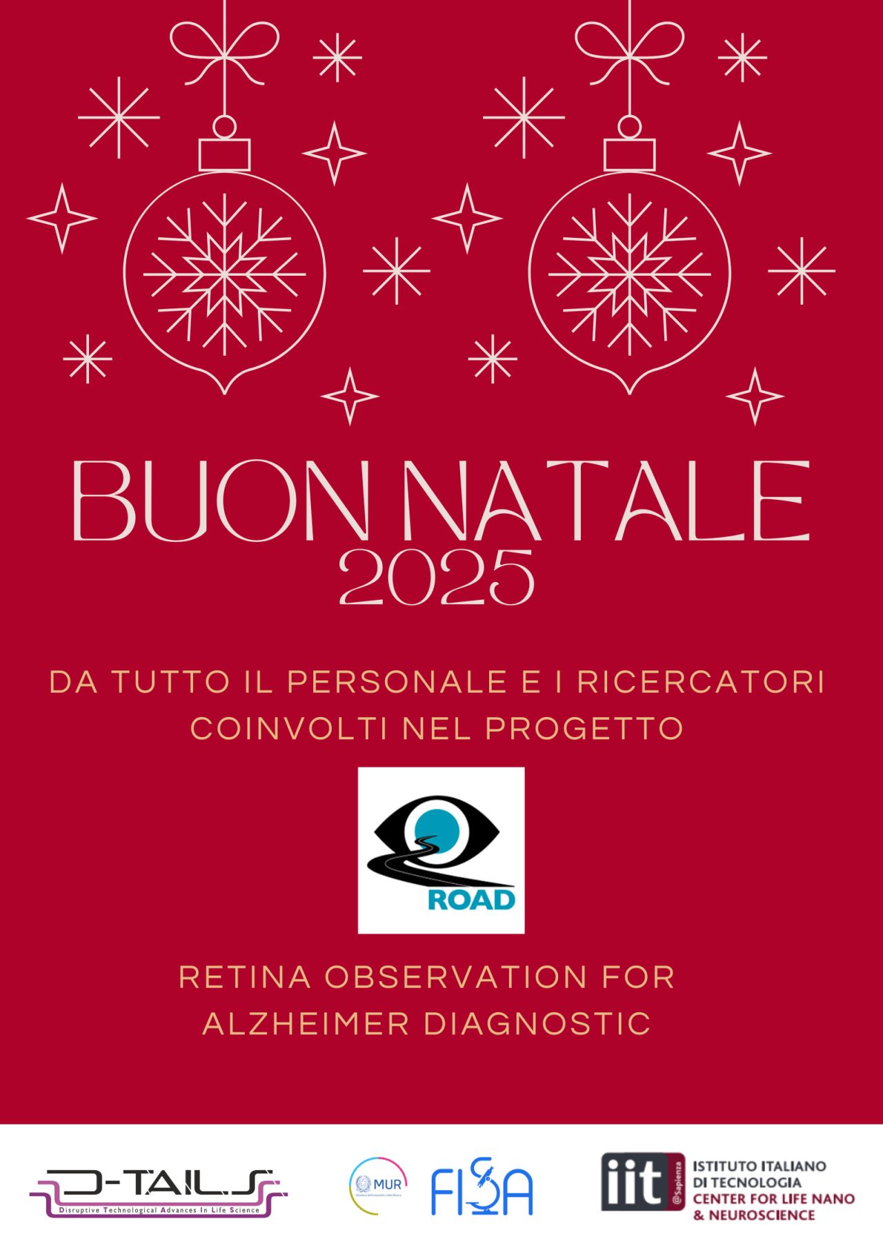 ✨ Welcome to the #ROADproject - Retina Observation for Alzheimer Diagnostic - coordinated by @giancarlo ruocco at @Istituto Italiano di Tecnologia together with @D-Tails Research, focused on developing a novel device for early detection and continuous monitoring of specific neurodegenerative diseases.